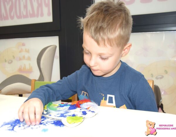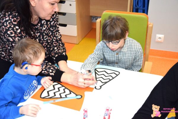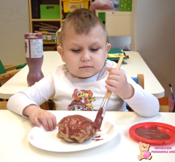 Rozmawialiśmy także o tradycjach jakie obchodzimy w Tłusty Czwartek. Zastanawialiśmy się, jak zadbać o to, aby nie zachorować od ich nadmiaru. Zdobyte umiejętności i wiedzę podsumowaliśmy tworząc prace plastyczno-techniczą – pączka.