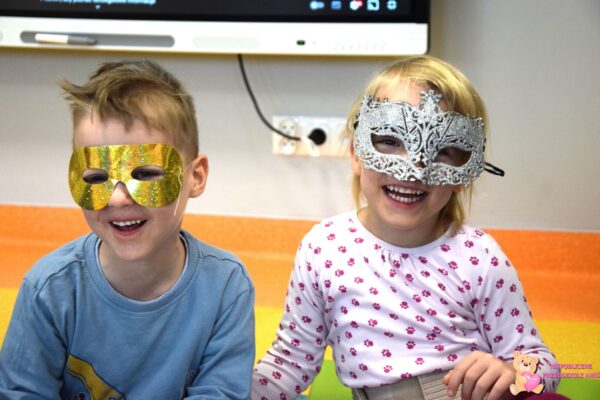 W karnawałowy nastrój wprowadziło nas opowiadanie B. Wicher „Smoki, piraci i księżniczki”, rozmawialiśmy o przebraniach, maskach i ozdobach na głowę z różnych zakątków wyobraźni.