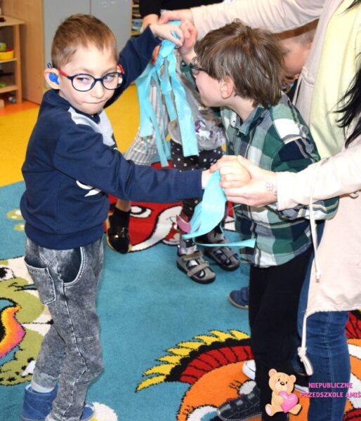 W wesołym nastroju wysłuchaliśmy wiersza B. Wierzbickiej „Jeże i balony”. Dzięki niemu każdy już wie, że balony po zetknięciu z ostrym elementem pękają. Bezawaryjnie służyły nam do nauki liczenia, utrwalania znajomości nazw kolorów i ozdabiania sali.