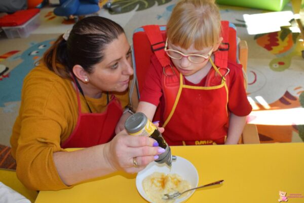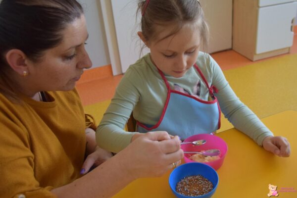 . Amisiaki dowiedziały się jak zrobić budyń, a następnie przygotowały go. Później dzieci udekorowały budyń kolorowymi posypkami, a na końcu z wielką radością skosztowały swój deser.![]()