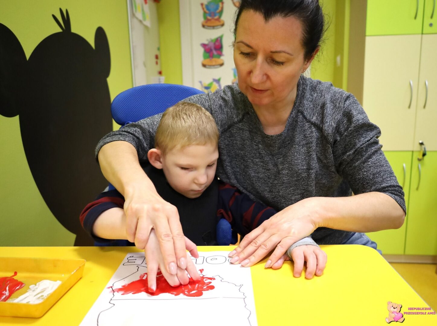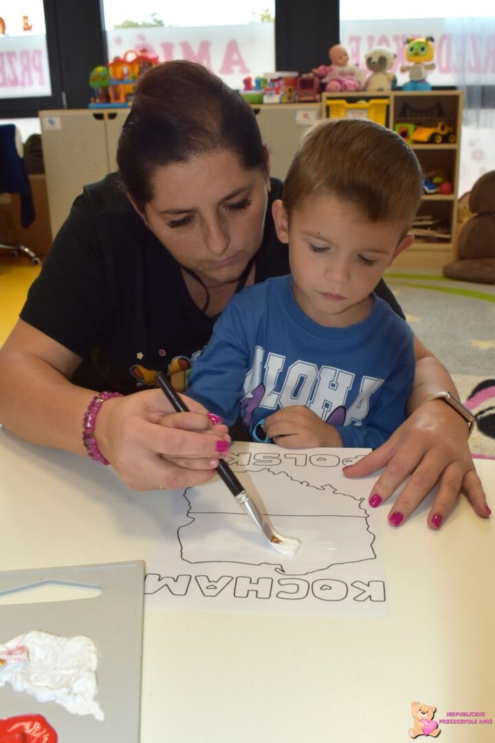 Na zakończenie każda grupa przystąpiła do kreatywnego zadania – malowania konturu Polski, pamiętając o odpowiednich kolorach ![]()