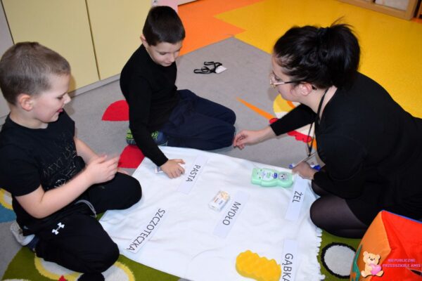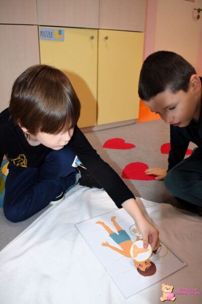 W bieżącym tygodniu grupa Zajączków dowiedziała się jak zbudowane jest ciało człowieka. Chłopacy poznali także 5 zmysłów (wzrok, słuch, smak, dotyk, węch) oraz sposoby, podczas których je używamy👀. Przedszkolaki poszerzały wiedzę na temat przedmiotów do utrzymywania czystości i pielęgnacji, które losowały z tajemniczego pudełka, a następie dopasowywały oraz literowały🪥. Na utrwalenie wiedzy Amisiaki wykonały dwie prace plastyczne, gdzie łączyły odpowiednie części ciała, a również samodzielnie tworzyli człowieka. Na zakończenie tygodnia chłopcy rozwijali swoją sprawność fizyczną poprzez udział w przeróżnych aktywnościach fizycznych🏃‍♂️.
