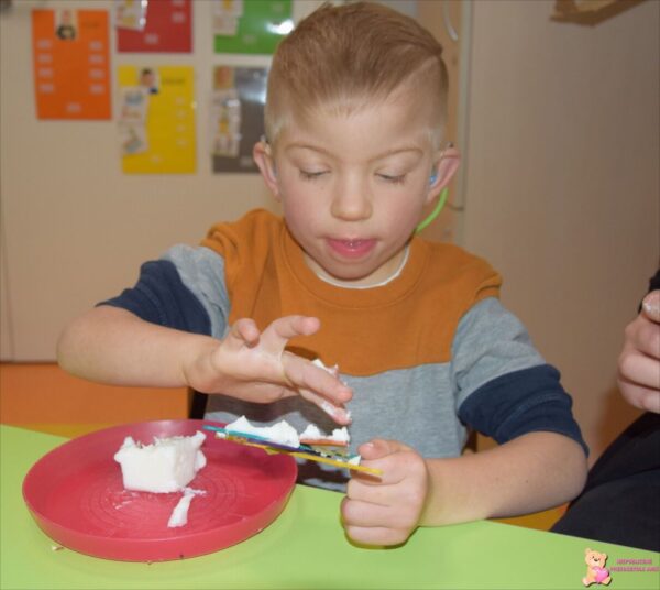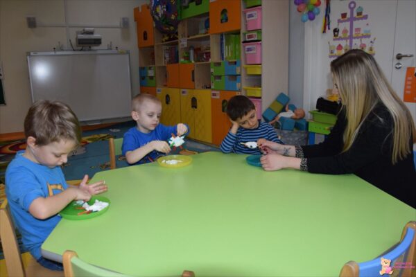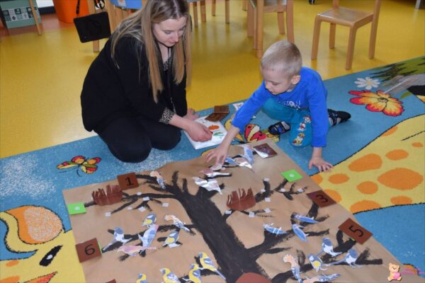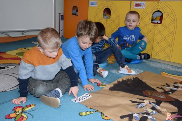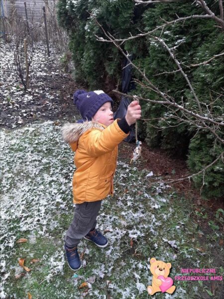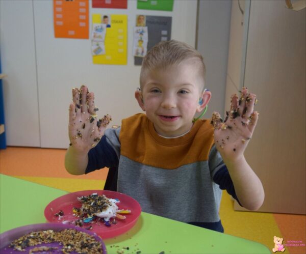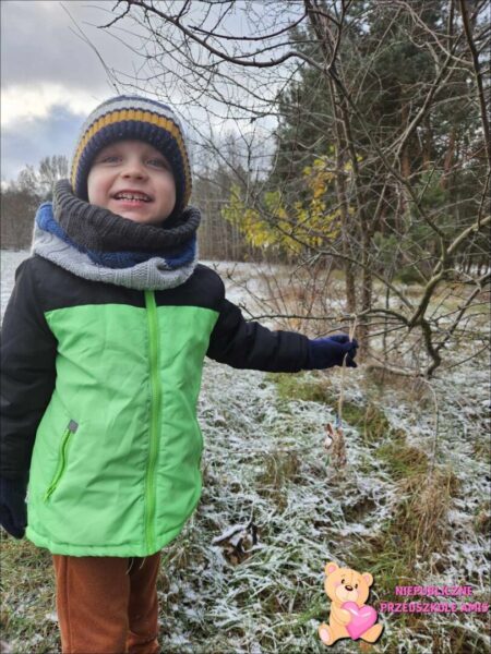 W minionym tygodniu grupa Jeżyków rozpoczęła przygotowania do zimy. Podczas zajęć omówiliśmy, jak ważne jest dokarmianie zwierząt zimą oraz jakie zwierzęta możemy spotkać zimą w lesie. Poznaliśmy też ptaki, które zimują w Polsce oraz te, które odlatują do ciepłych krajów. Chłopcy ćwiczyli także liczenie oraz podjęli próby dodawania poprzez doliczanie w zakresie 10. Wykonali także pracę plastyczno- techniczną „Opaska dla dzięcioła” oraz poznali literkę „D”. W owym tygodniu nie zabrało również doświadczeń sensorycznych – chłopcy wykonali pokarm dla ptaków z wykorzystaniem ziaren i smalcu, który potem zawiesili w pobliżu swoich domów.![]()