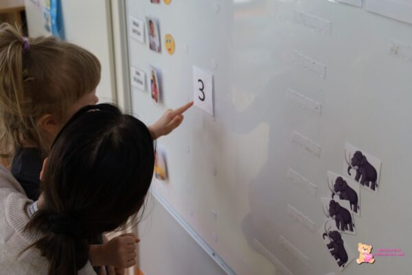 W ostatnich dniach nasze Gwiazdeczki przeżyły prawdziwą podróż w czasie i pełne wrażeń zajęcia sensoryczno-poznawcze! Dzieci z ogromnym zaangażowaniem tworzyły własne „akwaria” w słoikach. Przelewały wodę, wsypywały kolorowe elementy, dodawały morskie ozdoby i obserwowały, jak wszystko unosi się i miesza. Było dużo radości, ćwiczeń małej motoryki i stymulacji zmysłów – dotyku, wzroku oraz koordynacji wzrokowo–ruchowej. Podczas zabaw dydaktycznych utrwalaliśmy przeliczanie w zakresie 7. Gwiazdeczki poznały fascynujący świat prehistorii. Dowiedziały się, jak wyglądały mamuty oraz tygrysy szablozębne, czym się charakteryzowały i w jakich czasach żyły. Dzieci z zaciekawieniem oglądały ilustracje i dzieliły się swoimi spostrzeżeniami.
