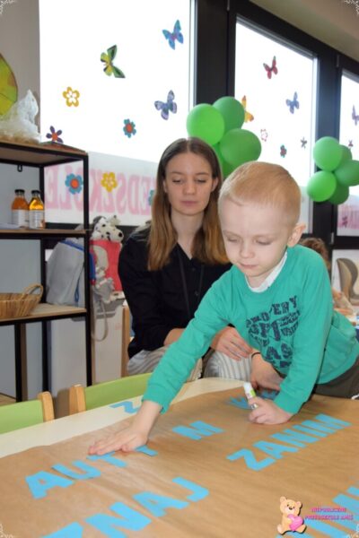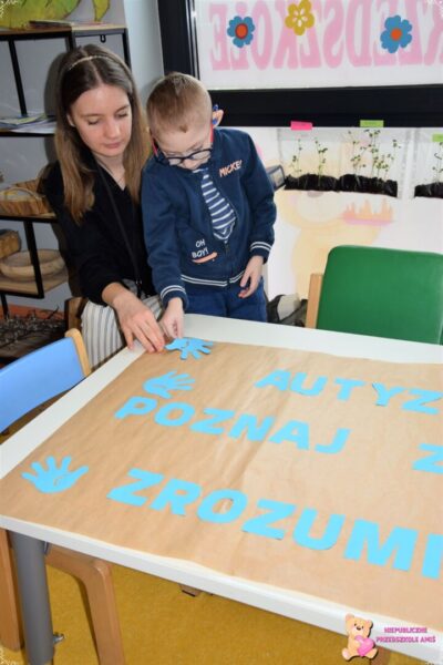 Dzisiaj w przedszkolu AMIŚ obchodziliśmy Światowy Dzień Świadomości Autyzmu. Przedszkolaki już w piątek rozpoczęły przygotowania do tego ważnego wydarzenia tworząc plakaty z hasłem, które zdobią korytarz FUNDACJI AMI. Dziś dzieci ozdabiały niebieskie motyle, które są symbolem wczorajszego święta. Możemy je podziwiać na drzwiach naszego przedszkola . W formie propagowania tego święta udaliśmy się również na spacer rozdając przechodniom balony z hasłem „ AMI na TY z AUTYZMEM ” oraz ulotki. Odwiedziliśmy aptekę, fryzjera, cukiernię oraz Miejski Dom Kultury- Ratusz, Centrum Informacji Turystycznej, Miejski Ośrodek Pomocy Społecznej, tym samym szerząc wiedzę o autyzmie.