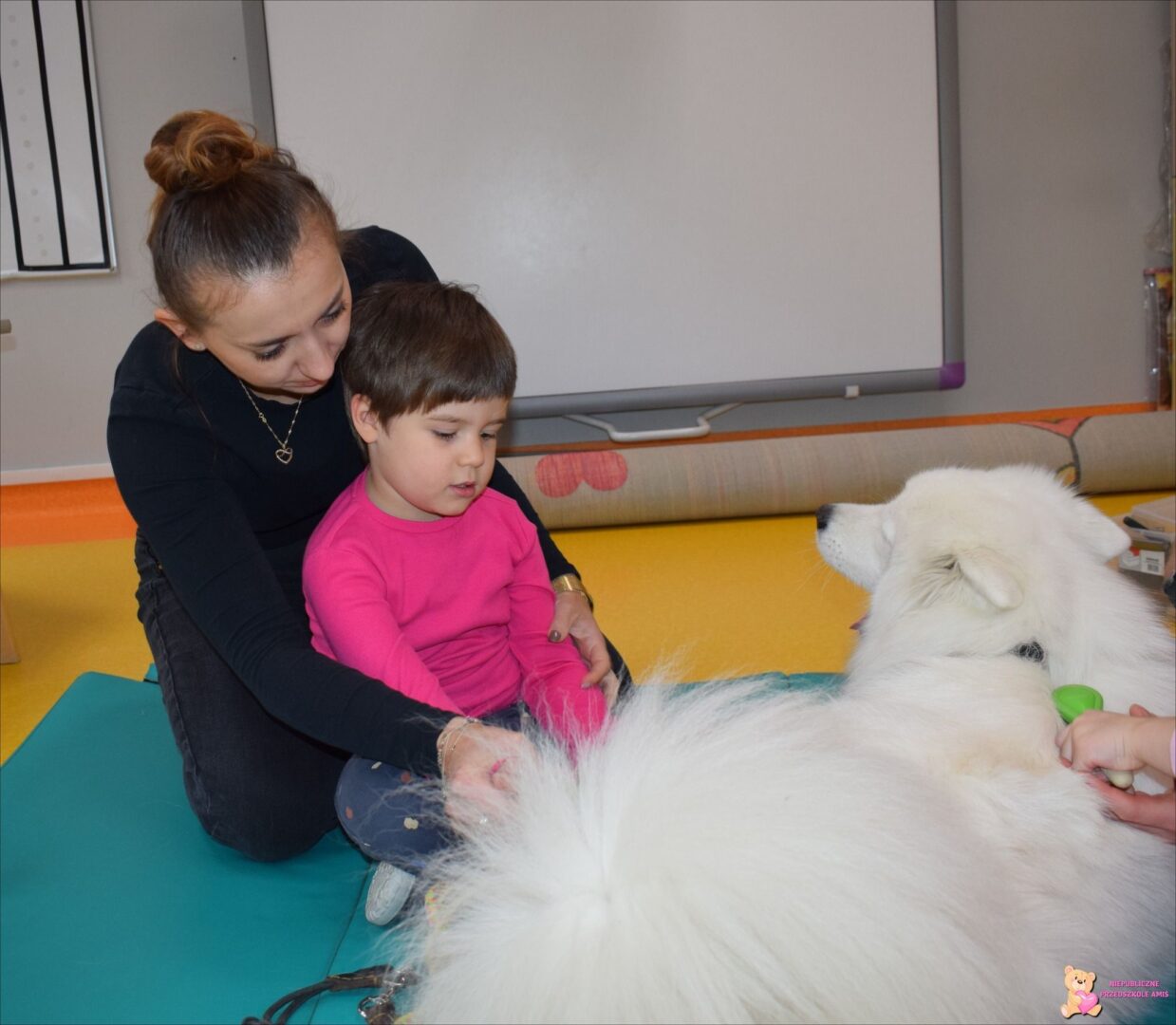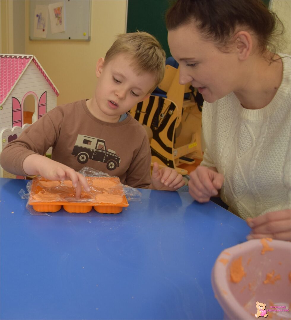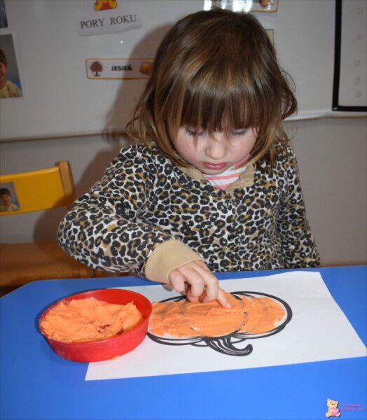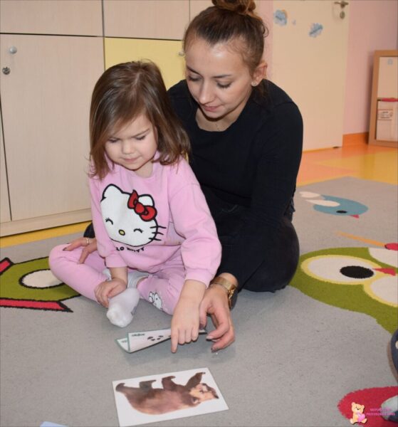 W tym tygodniu w grupie Promyczków utrwalaliśmy i poszerzaliśmy wiadomości związane z jesienią i światem zwierząt. Dzieci aktywnie uczestniczyły w spotkaniu z pieskiem. Jak zawsze podczas zajęć doskonaliły czynności opiekuńcze wobec Juki, tj. czesanie, głaskanie, karmienie oraz prowadzenie na smyczy. Podczas zabaw ruchowych dzieci rozwijały umiejętności związane z motoryką dużą: przechodzenie przez tunel, zbieranie śladów zwierząt i odkładanie ich w wyznaczone miejsce. Nie zabrakło również zajęć plastycznych podczas, których szczególne zainteresowanie wzbudziły „rosnące farby”, dzięki nim stymulowaliśmy zmysł dotyku.