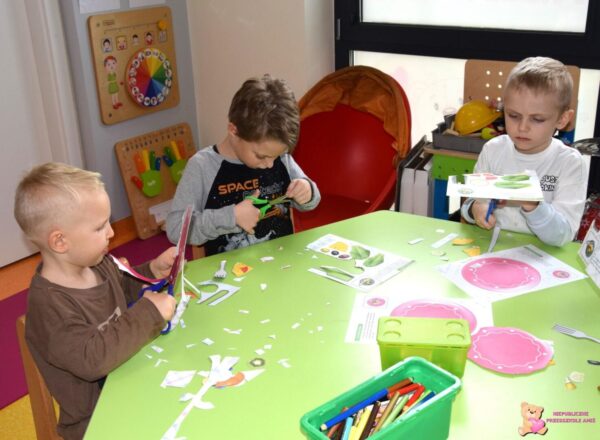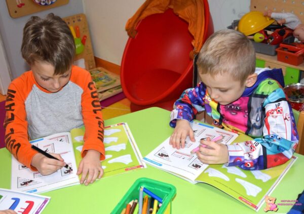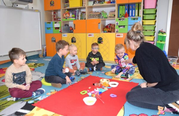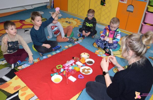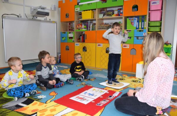 W trakcie tygodnia poświęconemu ciału człowieka chłopcy z grupy Jeżyków dowiedzieli się, czym są zmysły, jak działają, oraz jakie części ciała pomagają nam je wykorzystywać. Obejrzeli ilustracje ciała człowieka, wskazując na poszczególne jego części (głowa, ręce, nogi) i omawiając ich funkcje. Dzieci aktywnie uczestniczyły w dyskusji, podając przykłady zmysłów. Omawialiśmy także podstawowe emocje oraz poznawaliśmy strategie skutecznego rozładowywania emocji. Dzieci poznały także literkę „Y”. Nauczyły się, jak wygląda litera, zarówno w wersji drukowanej, jak i pisanej. Następnie pisały ją w powietrzu oraz na kartkach pracy, gdzie dzieci miały za zadanie wykonać ćwiczenia z literką, ćwicząc jej kształt i prawidłowe pismo. Chłopcy uczestniczyli w masażykach przy użyciu piłek sensorycznych i rollerów. Dowiedzieli się, jak można używać tych przyrządów do relaksacji ciała. Dzieci ćwiczyły masowanie dłoni, ramion i pleców, co sprzyjało rozluźnieniu mięśni oraz rozwijało zmysł dotyku. Na zakończenie tygodnia, chłopcy wzięli udział w zabawach ruchowych przy muzyce. Zajęcia odbywały się w rytm wesołej melodii, a dzieci wykonywały różnorodne ćwiczenia fizyczne, takie jak skakanie, bieganie w kółku, rozciąganie rąk i nóg, a także ćwiczenia koordynacyjne. Zajęcia te miały na celu rozwój motoryki dużej, poprawę równowagi i zmysłu orientacji w przestrzeni.