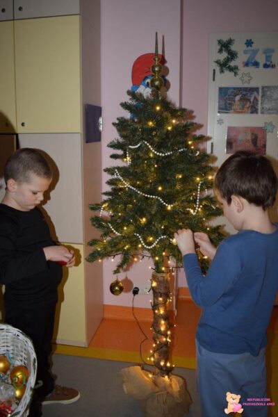 W tym tygodniu chłopcy z grupy „Zajączków” wzięli udział w radosnych, świątecznych zajęciach, podczas których wspólnie ubierali choinkę🎄 ozdabiając ją kolorowymi bombkami, łańcuchami i światełkami. Przy dźwiękach wesołych piosenek świątecznych🎼 przedszkolaki wprowadziły się w magiczną atmosferę nadchodzących Świąt Bożego Narodzenia🎉. Chłopcy napisali także list do Świętego Mikołaja🎅. Najpierw przyklejali wybrane zabawki 🛻, samodzielnie podpisywali prace a na koniec zamknęli list✉️ i odpowiednio go zaadresowali.