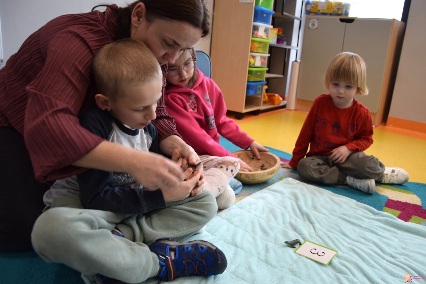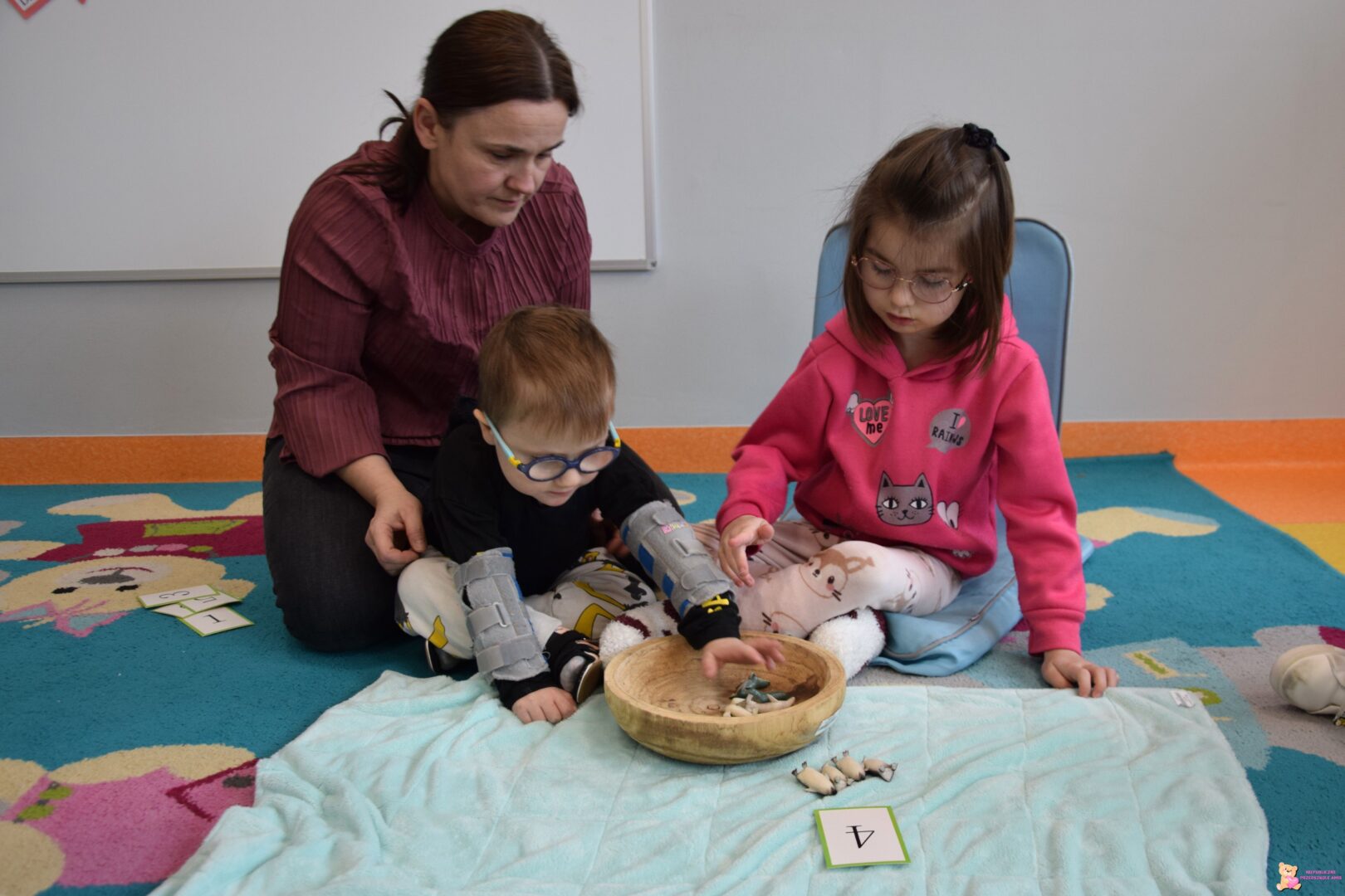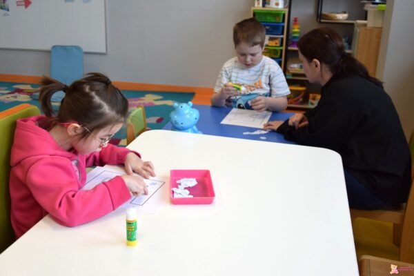 poznała również literkę „E” . Razem dopasowywaliśmy ilość pingwinów