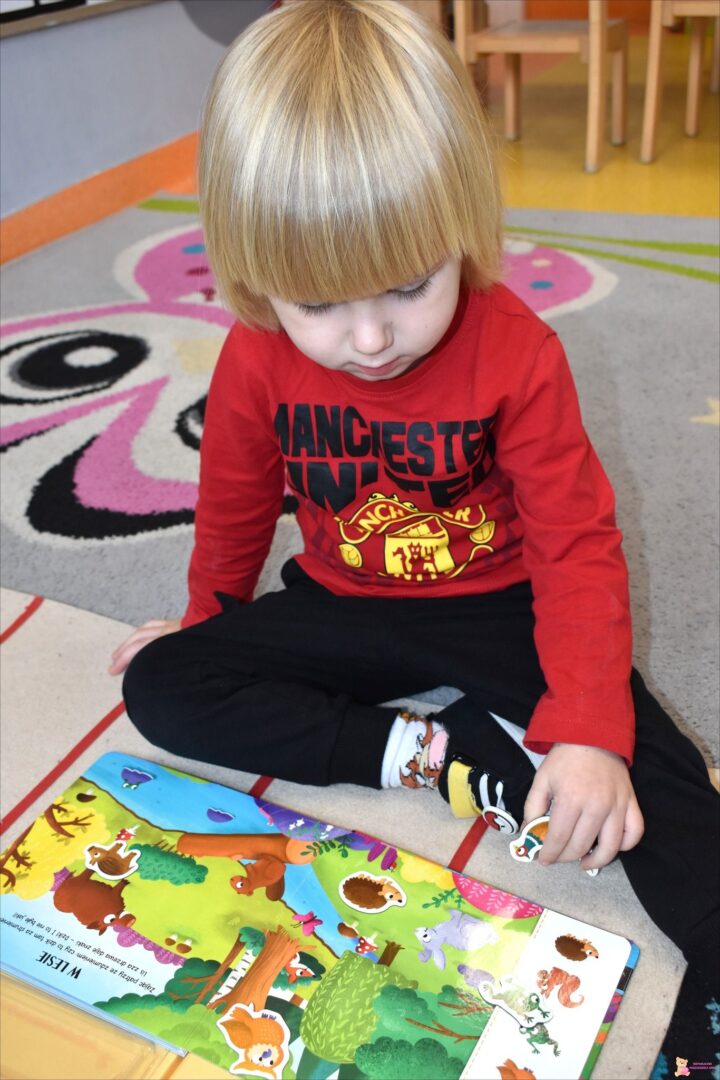 przesuwaliśmy koło w książce przeprowadzając zwierzątko po labiryncie. To był intensywny tydzień w grupie misie.