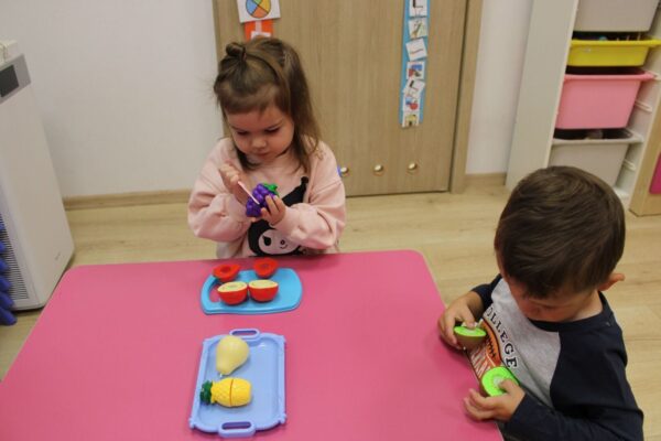 W minionym tygodniu tematem przewodnim była „Jesień w sadzie”. Dzieci poznały owoce, które rosną w sadach🍎🍐🍇, uczyły się je rozpoznawać na obrazkach i dopasowywały dany owoc do planszy. Podczas zabawy ćwiczyły motorykę małą krojąc plastikowe odpowiedniki owoców. Wykonały także pracę plastyczno-techniczną „Śliwka”🎨. Podczas porannej gimnastyki🤸‍♂️🤸ćwiczyliśmy motorykę dużą chodząc po ścieżce sensorycznej.