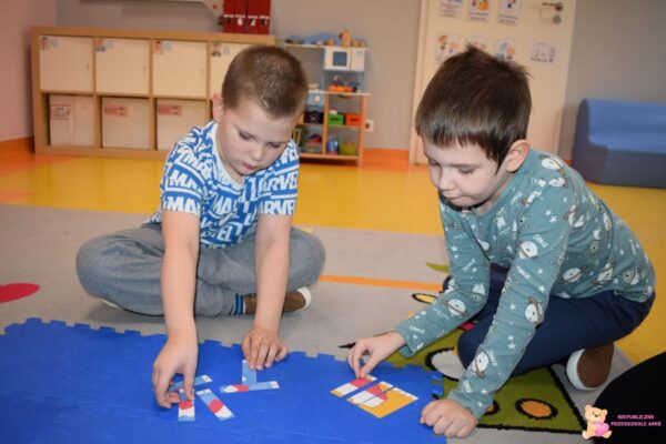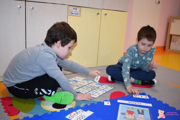 W tym tygodniu chłopcy z grupy „Zajączków” pogłębiali swoją wiedzę na temat symboli narodowych oraz polskich miejscowości. Dzieci z wielkim zaangażowaniem poznawały elementy związane z tożsamością narodową, takie jak flaga