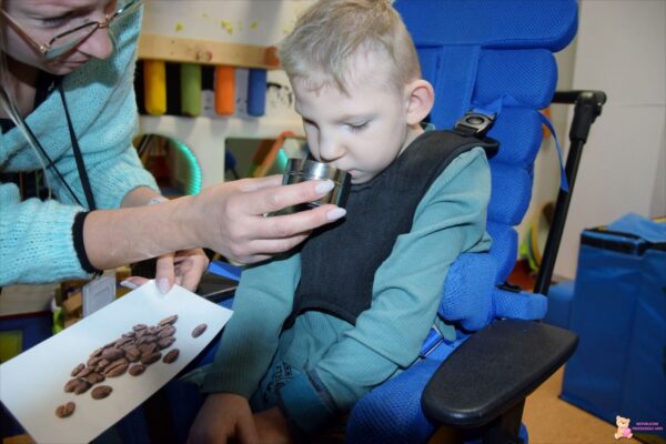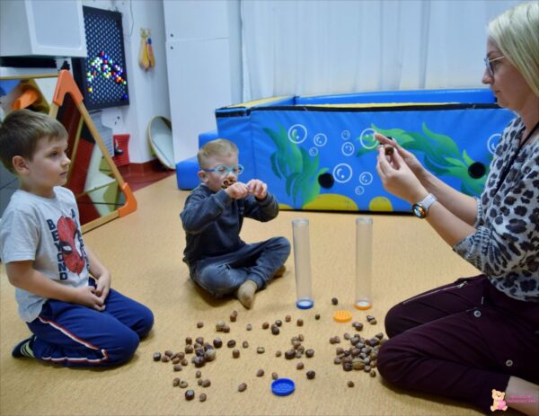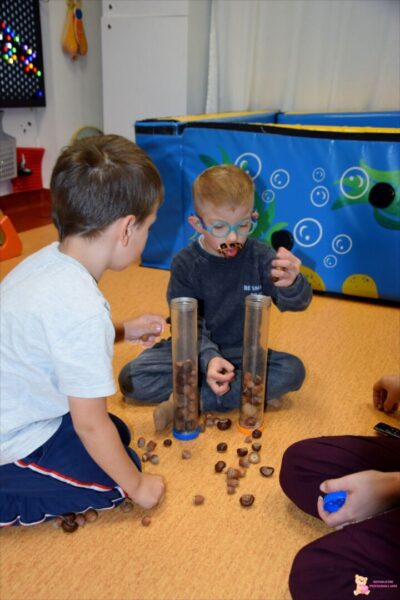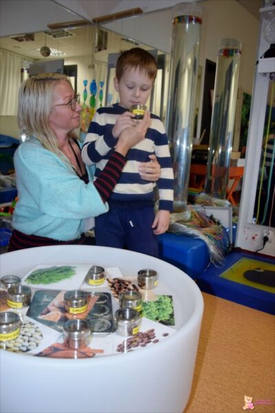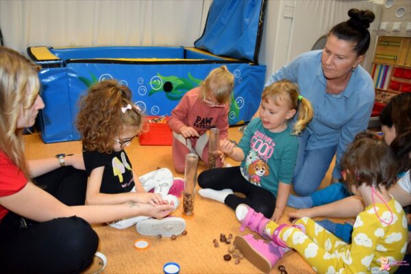 Lubimy jesień🧆☔️, zwłaszcza w Sali doświadczenia Świata. Przedszkolaki mogły doświadczyć tej pięknej pory roku i poczuć się jak w parku z grubą warstwą liści 🦔🦔na magicznym dywanie i w basenie z kulkami. Dzieci segregowały do tub dary jesieni, tworząc grzechotki🧆🧆. Odbyły się zajęcia z treningu węchu, dzieci wąchały, dotykały i odróżniały na zdjęciu przyprawy kuchenne. Poprzez dostarczanie bodźców węchowych, dotykowych i ruchowych stymulowały swoje zmysły.