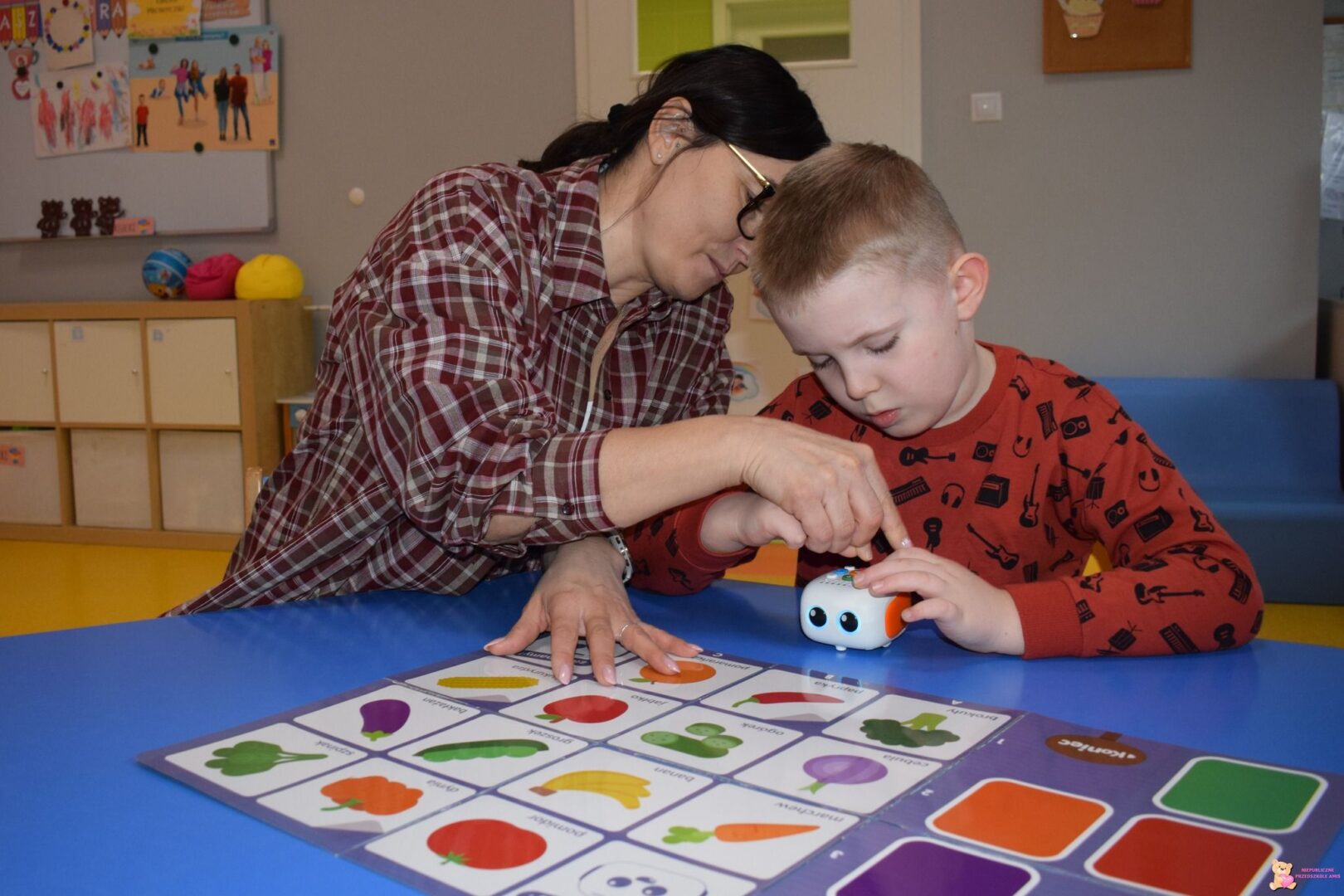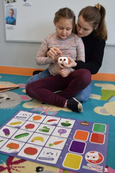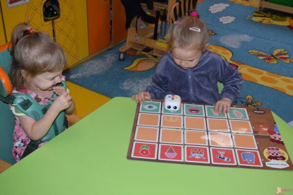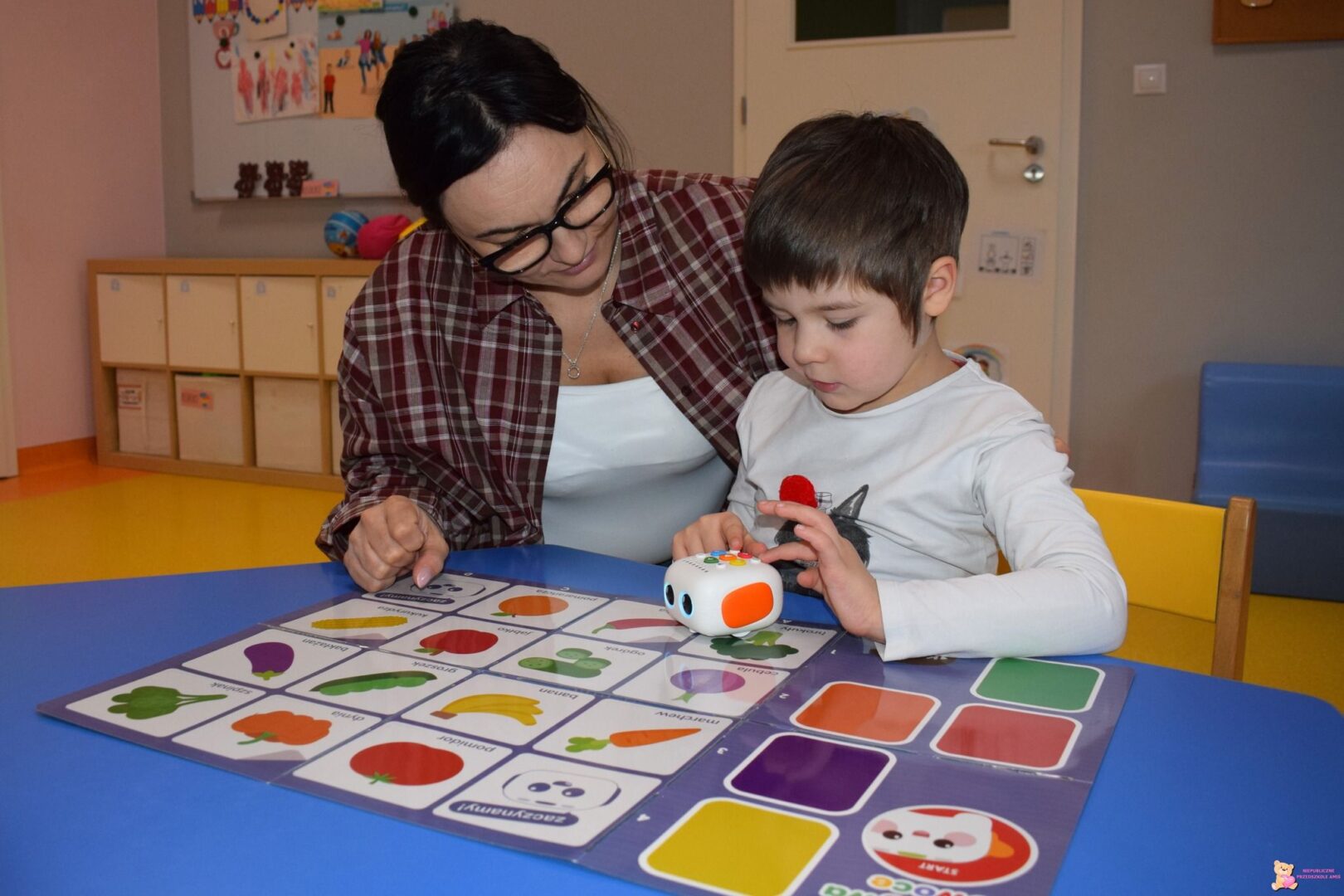 rozpoczęły się od zapoznania dzieci z robotem, jego wyglądem, sposobem poruszania się oraz możliwościami interakcji. Przedszkolaki poznawały zasady pracy z Zosią i podejmowały pierwsze próby kodowania, ucząc się sterowania robotem za pomocą prostych poleceń kierunkowych: góra, dół, prawo, lewo