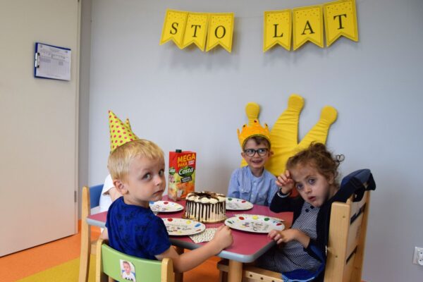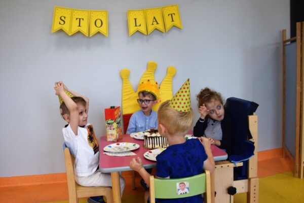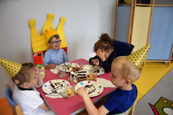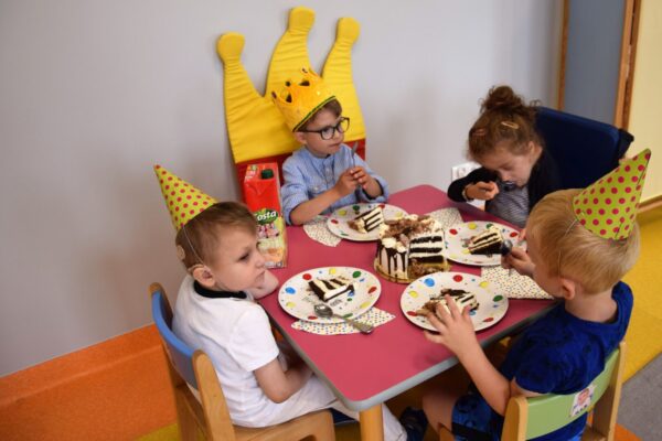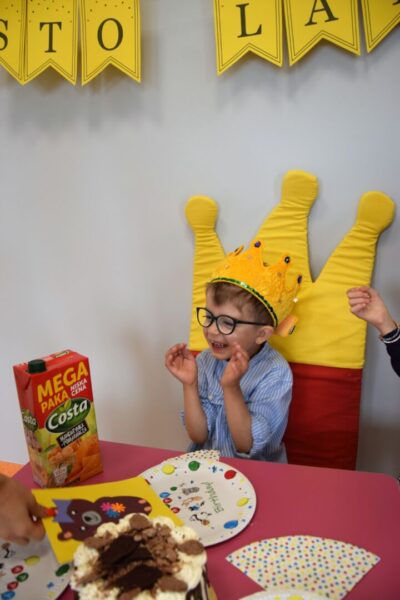 Dziś w grupie V jeden z naszych amisiowych przedszkolaków obchodził urodziny! Kajetan skończył już 6 lat! Z tej okazji odbyło się przyjęcie urodzinowe z przepysznym tortem i hucznym odśpiewanym „Sto lat!”. Koleżanka Kajtka wręczyła mu kartkę urodzinową, a jubilat w podzięce poczęstował każde dziecko przepysznym cukierkiem. Kajtusiu jeszcze raz wszystkiego najlepszego!!!