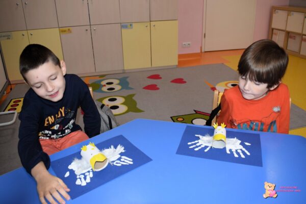 11 listopada, czyli Narodowe Święto Niepodległości już w sobotę, dlatego grupa „Zajączków” przypomniała sobie symbole narodowe oraz ich nazwy. Amisiaki poznały także główne miasta i zabytki znajdujące się w Polsce oraz uczyli się ich globalnego czytania. Chłopcy zaobserwowali dwa główne środowiska, w których możemy mieszkać, czyli miasto i wieś. Poznali co można w nich robić, oraz czym się charakteryzują. Przedszkolaki wykonały także dwie prace plastyczne: wykleiły plasteliną obrazki zwierząt wiejskich oraz wykonały białego orła z symbolu godła Polski, odciskając swoje rączki, a następnie doklejając koronę, dziób, oczy i szpony.