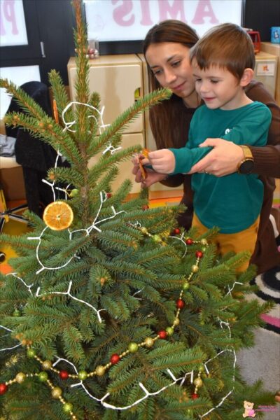 Grupa „Misie” ubierała pięknie pachnącą choinkę🎄 kolorowymi łańcuchami oraz suszonymi pomarańczami🍊. Aromat roznosił się po całej sali. Na chłopców czekała niespodzianka – zamieszał tu Elfik Psotnik🧝‍♂️, który każdego dnia zostawia ciekawe zadania do wykonania. W poprzednim tygodniu musieliśmy ćwiczyć nasze małe rączki👐, wykonując zadanie grafomotoryczne, a Elfik zjadł pyszne ciasteczko🍪, które dla niego przygotowaliśmy. Już nie możemy doczekać się kolejnych ciekawych zadań do wykonania…