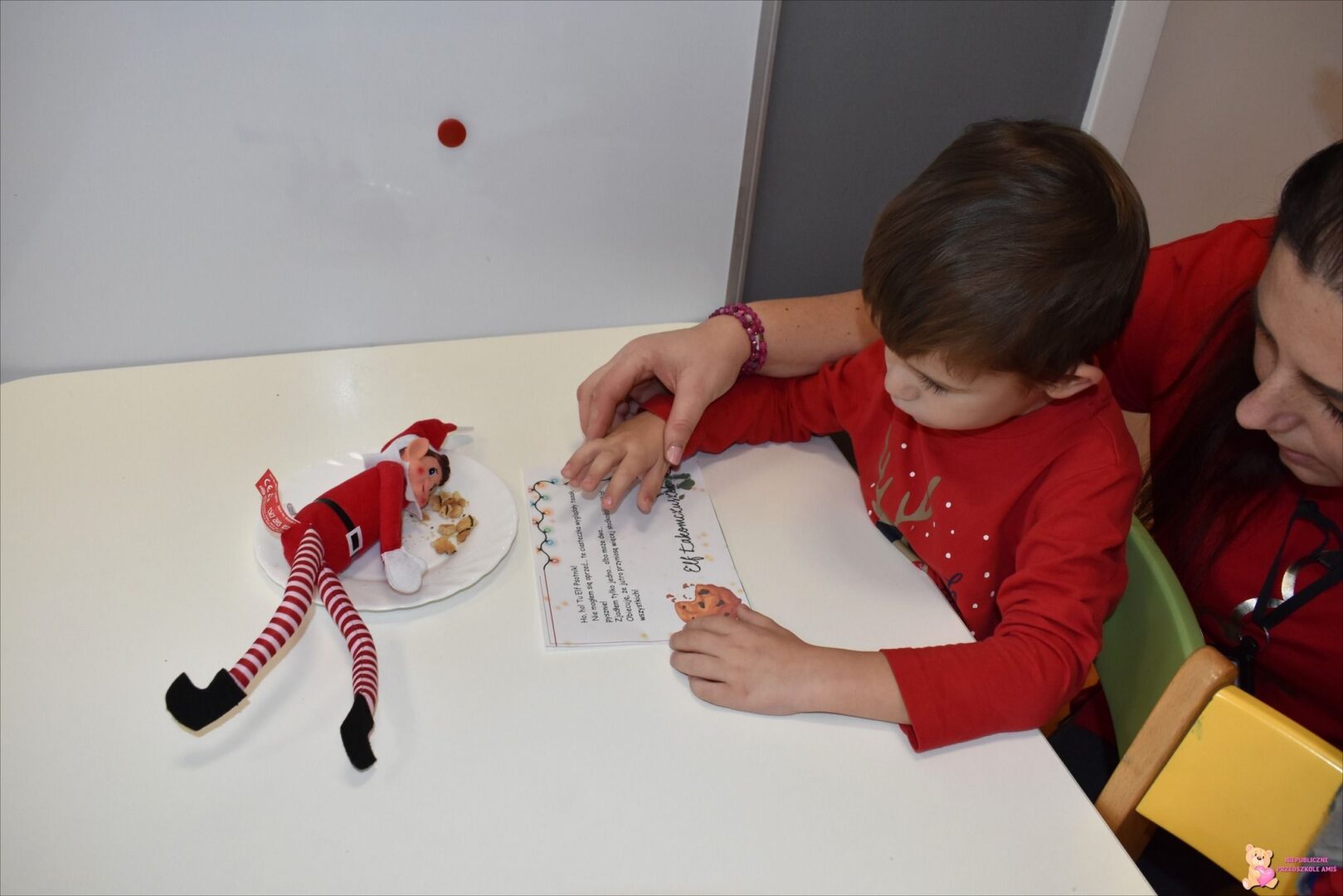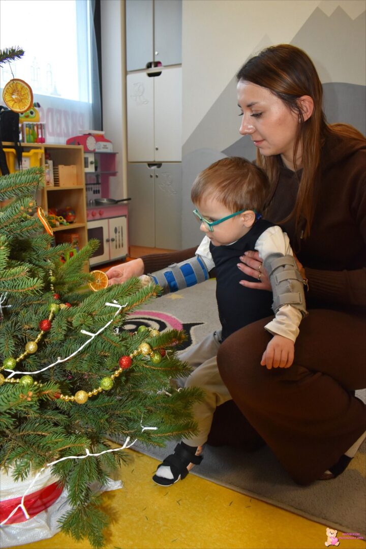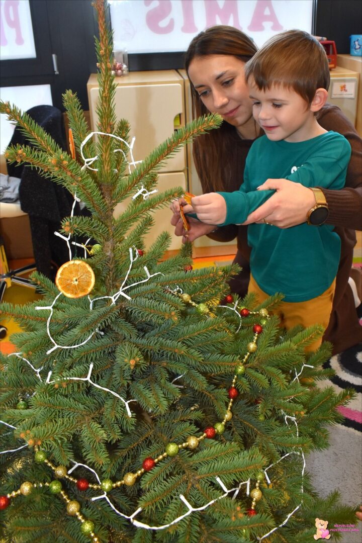 Grupa „Misie” ubierała pięknie pachnącą choinkę🎄 kolorowymi łańcuchami oraz suszonymi pomarańczami🍊. Aromat roznosił się po całej sali. Na chłopców czekała niespodzianka – zamieszał tu Elfik Psotnik🧝‍♂️, który każdego dnia zostawia ciekawe zadania do wykonania. W poprzednim tygodniu musieliśmy ćwiczyć nasze małe rączki👐, wykonując zadanie grafomotoryczne, a Elfik zjadł pyszne ciasteczko🍪, które dla niego przygotowaliśmy. Już nie możemy doczekać się kolejnych ciekawych zadań do wykonania…
