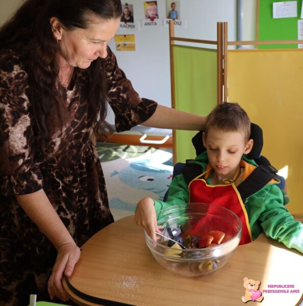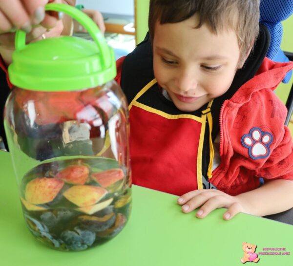 W tym tygodniu przedszkolaki z grupy Perełek podczas zajęć dydaktycznych omawiały tematy związane z jesiennymi zbiorami w sadzie 🍐oraz ogrodzie🥕. Dzieci dowiedziały się jakie owoce możemy tam spotkać, po czym zabrały się do pracy i ćwicząc swoje małe rączki wklejały śliwki do słoika🫙. Przedszkolaki wybrały się także na zakupy 🛍do warzywniaka aby zobaczyć jakie owoce i warzywa można spotkać w sklepie. Powstał także kompot ze śliwek i jabłek🍎, nie zabrakło też zabaw ruchowych z turlaniem dyni po dywanie i pracy na tablicy multimedialnej z łączeniem warzyw w pary oraz przygotowaniem zupy jarzynowej🥣.