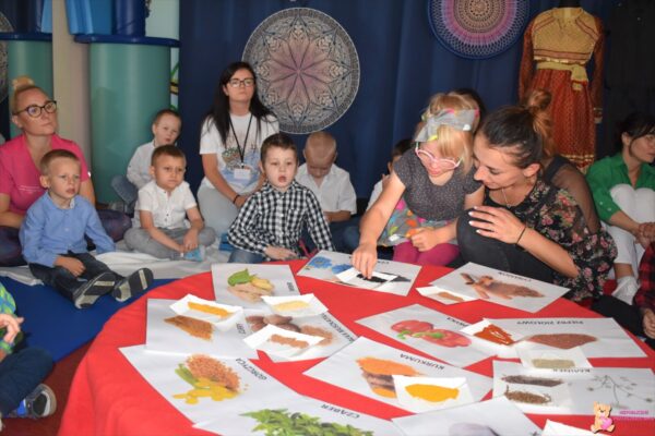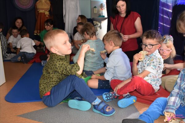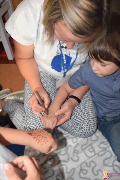 W dniu dzisiejszym wszystkie Amisiaki przeniosły się do świata Bollywood. Ciocie przygotowały dla nas piękne stroje SARI, które mogliśmy przymierzyć. Poznaliśmy zwyczaje i tradycje indyjskie, po czym przeszliśmy do nauki tańca „Nataraja”. Dzieci miały okazję spróbować także indyjskich potraw takich jak: pita, Gulab Jamuns- pączki oraz trufle indyjskie przygotowane przez ciocię. Amisiaki poznawały różne przyprawy wywodzące się z kuchni indyjskiej. Dziękujemy również rodzicom Aryana za piękne stroje „SARI”