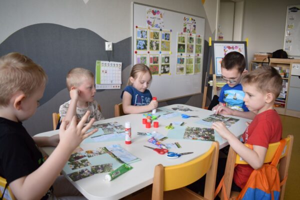 Przy okazji tak interesującego tematu poznali literkę „Ł” , która później utrwalali podczas zadań stolikowych z wykorzystaniem kart pracy.