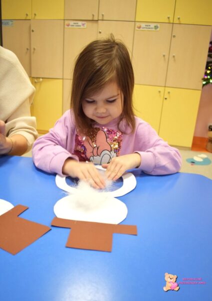 W tym tygodniu Promyczki wykonywały karty pracy związane z nadchodzącymi Świętami. Ćwiczyły sprawność manualną poprzez wyklejanie i przyklejanie elementów. Tworzyliśmy bałwanki, bombki oraz choinki. Realizowaliśmy także tematy związane ze światem sprzętów domowych. Dzieci rozpoznawały i próbowały wskazywać na obrazku dźwięk, który usłyszały.