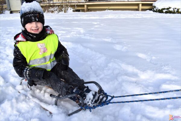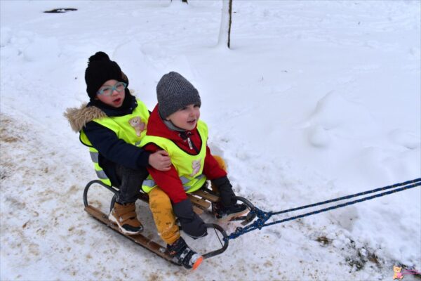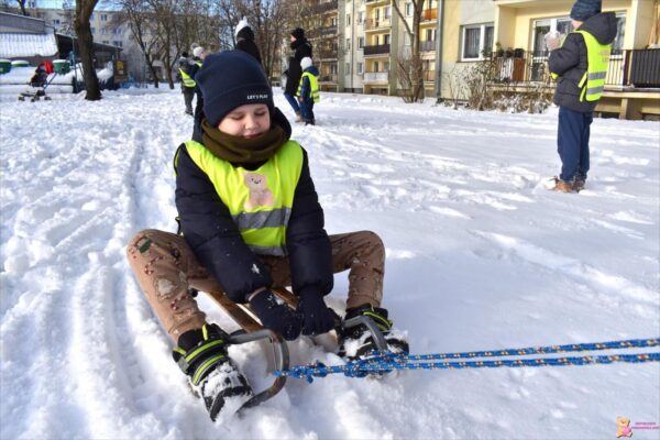 , zostawiając za sobą pierwsze ślady. Dzieci miały okazję pojeździć na sankach![]()