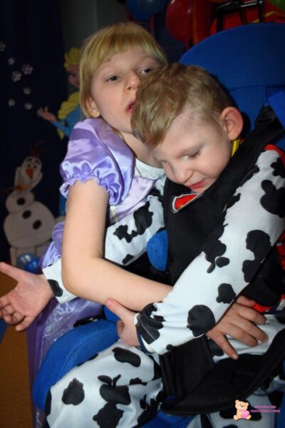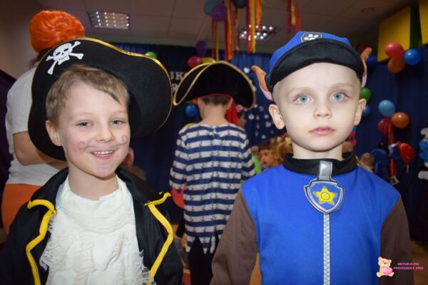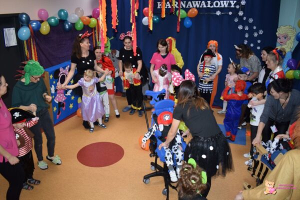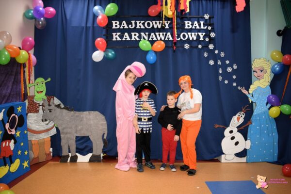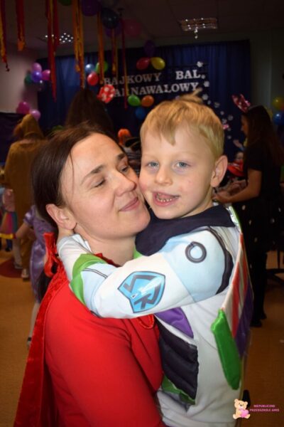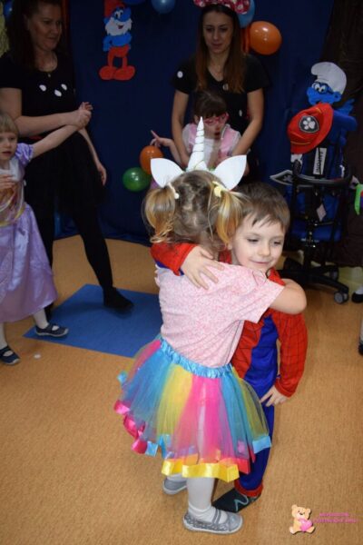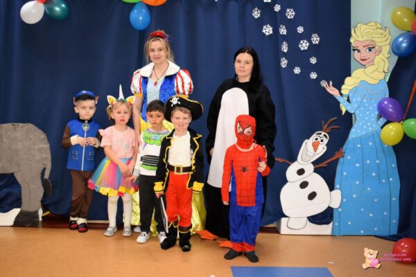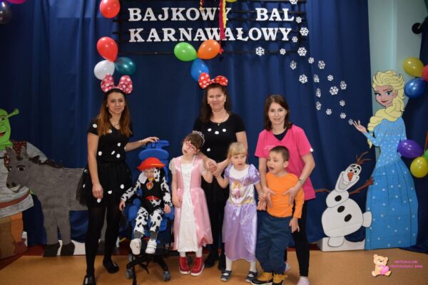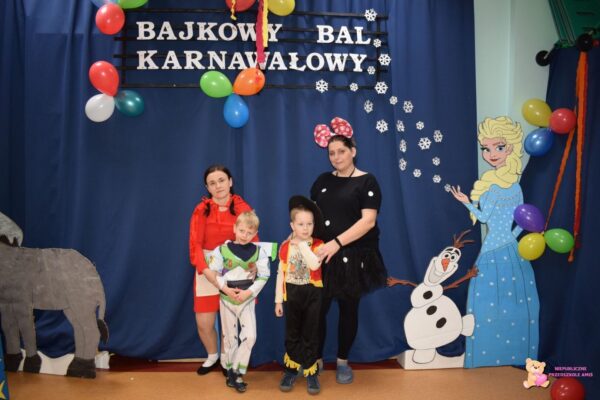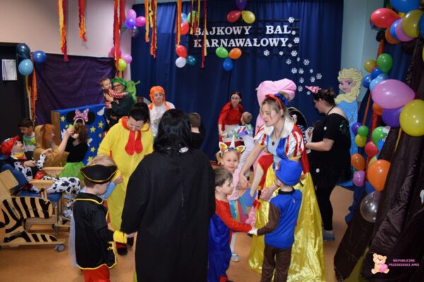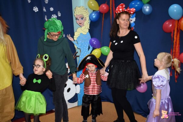 . Dzieci przybyły na bal w strojach ulubionych bajkowych bohaterów, aby wspólnie świętować, tańczyć