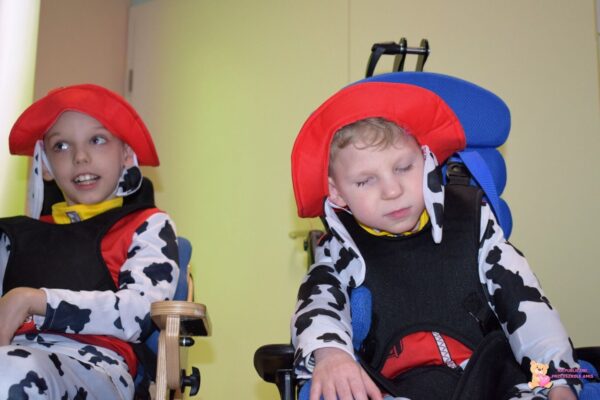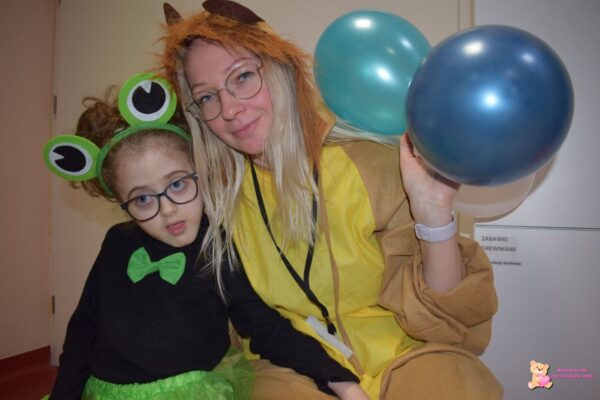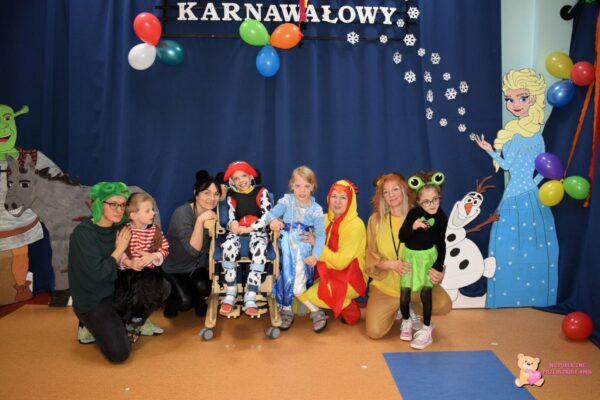 , pociąg po korytarzu Fundacji AMI. Podczas zabawy nie zabrakło czasu na zdjęcia grupowe i zdjęcia w fotobudce