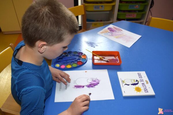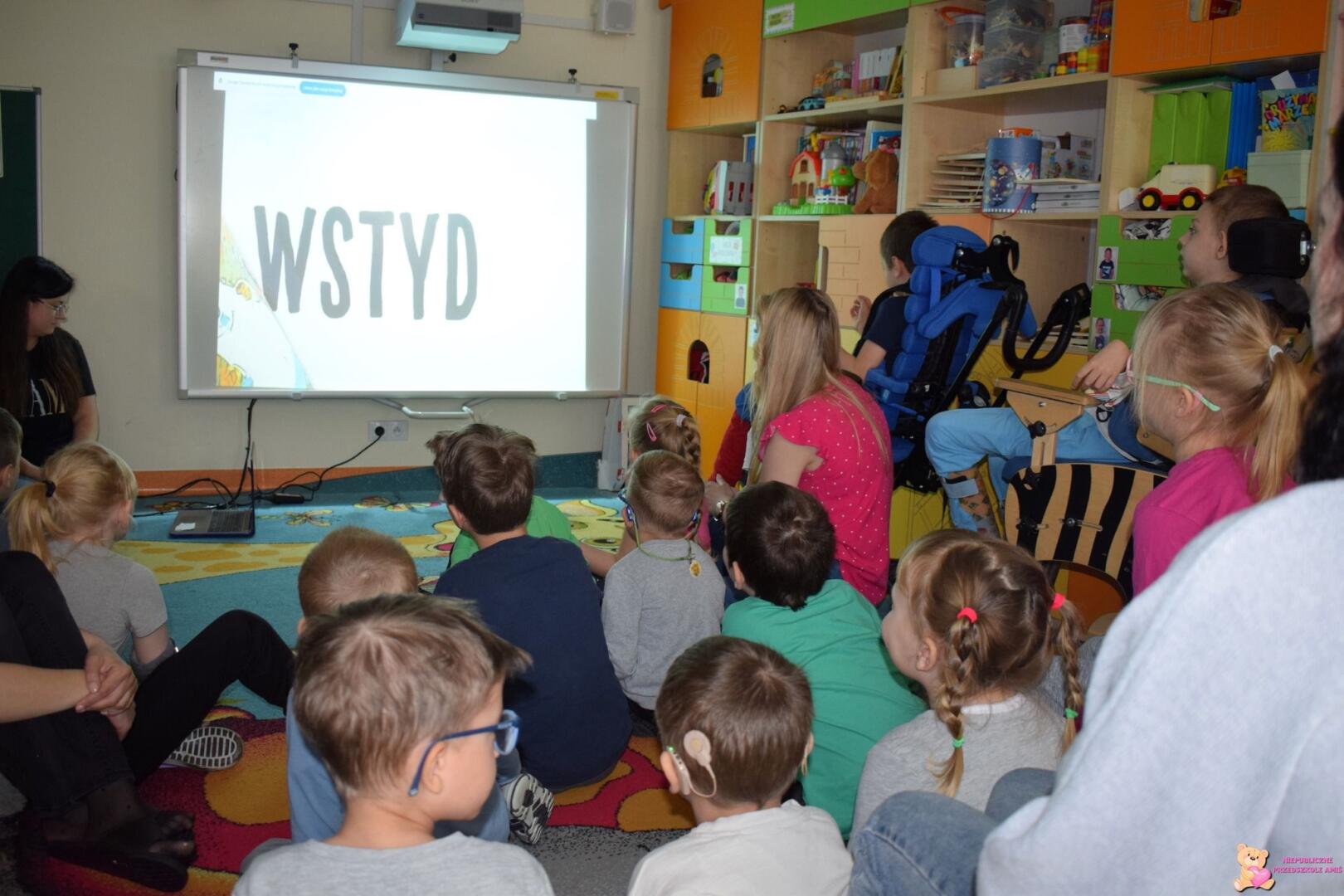W kolejnej części zajęć przedszkolaki obejrzały film o uczuciu zawstydzenia. Celem filmu było powtórzenie i lepsze zrozumieć przez dzieci historie Gucia. Na zakończenie spotkania przedszkolaki wykonały prace plastyczna.