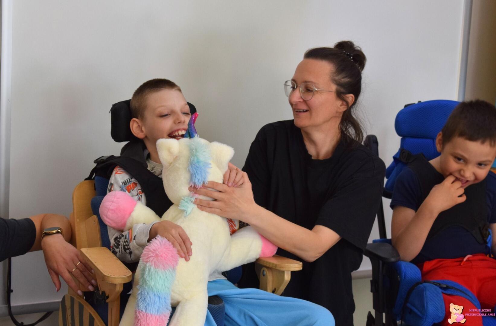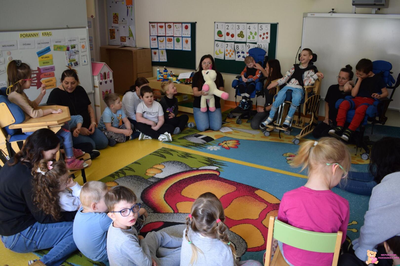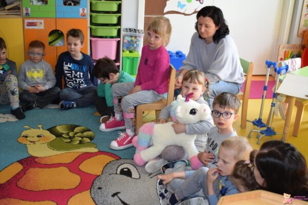 Wczoraj nasze przedszkolaki wzięły udział w kolejnym spotkaniu z Międzynarodowego Projektu „Kolorowe uczucia Gucia, którego celem jest wspieranie rozwoju emocjonalnego dzieci poprzez zabawę i opowieści. Zajęcia rozpoczęły się od ciepłego powitania pluszowego bohatera – jednorożca Gucia