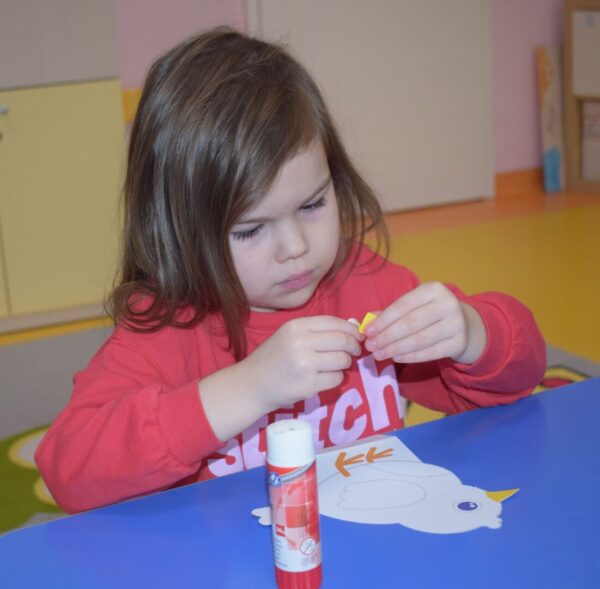 W ubiegłym tygodniu przedszkolaki z grupy Promyczków podczas zajęć dydaktycznych ćwiczyły motorykę małą wyklejając plasteliną czerwone jabłko. Dzieci rozwijały sprawność manualną i zainteresowanie przyrodą podczas której wykonały prace plastyczną w postaci wydzieranki. Ćwiczyły również położenie przedmiotów w przestrzeni: nad, pod, obok, przed. Nie zabrakło również zabaw muzyczno- ruchowych z kolorowymi chustami do piosenki „Kolorowe listki”