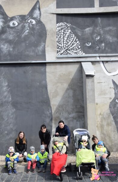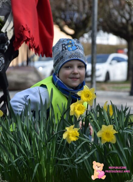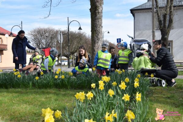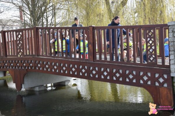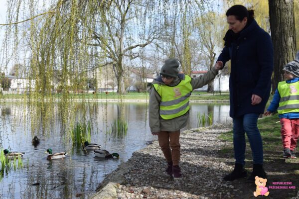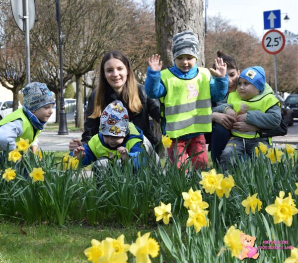 W czwartek Gwiazdeczki wybrały się na spacer. Pogoda była piękna. Buźki naszych dzieciaków grzały promienie słoneczne. Odwiedziliśmy park miejski w Zduńskiej Woli, gdzie wspólnie karmiliśmy kaczki i gołębie. Widzieliśmy również pływające w stawach ryby. Wsłuchując się w śpiew ptaków, podziwialiśmy piękne wiosenne kwiaty i przyrodę budzącą się do życia. Spacerując miastem mieliśmy okazję zobaczyć piękne murale przedstawiające zwierzęta, które dzieci tak bardzo lubią. To był bardzo przyjemny spacer, który mamy nadzieję powtórzyć. Nasze Gwiazdeczki dzielnie pokonały drogę o własnych siłach i Amisiowe ciocie były z nich bardzo dumne.