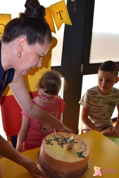 a następnie zjadły pyszny tort. Dzieci wręczyły solenizantce kartkę urodzinową, nie zabrakło śmiechu i wesołej zabawy