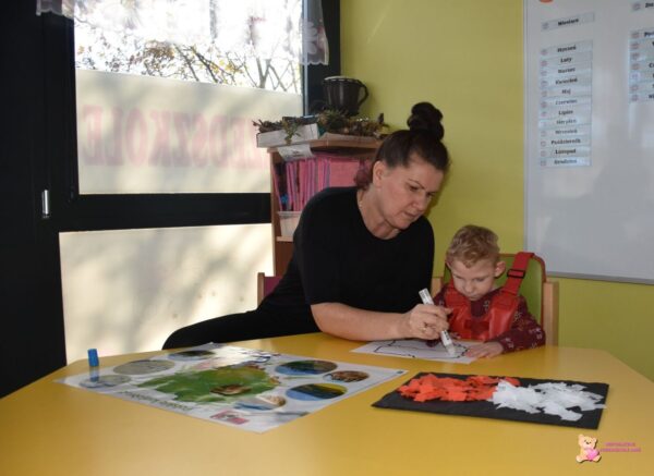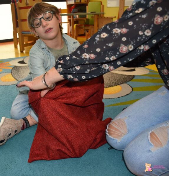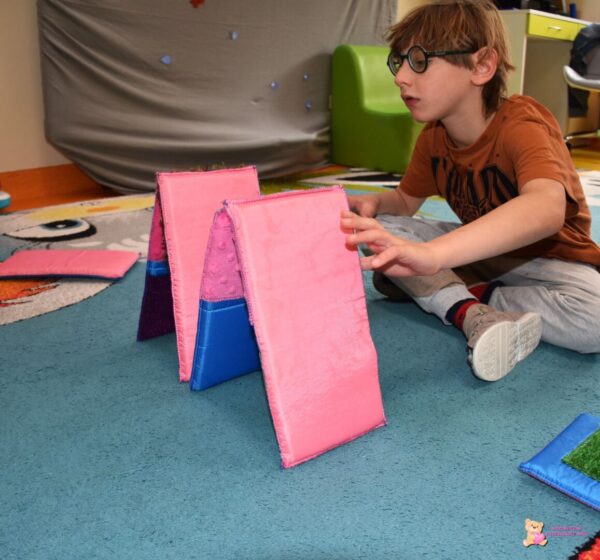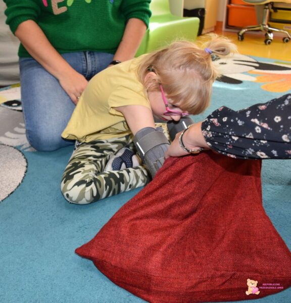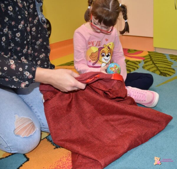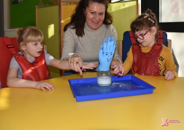 Przedszkolaki z grupy „Perełek” podczas zajęć dydaktycznych postanowiły użyć swojej wyobraźni i z pomocą cioć stworzyły piękne, kolorowe stworki wyklejając oczy, usta, nosek i włosy z plasteliny. Ćwicząc swoje rączki dzieci losowały z dużego worka różne przedmioty- zabawy przy tym co nie miara. Z sensorycznego domina powstawały wielkie budowle przy której musieli użyć swojej wyobraźni. Podczas zajęć powstał także eksperyment „Magiczny stworek” do którego wykorzystaliśmy rękawiczkę gumową, sodę i ocet. Nie zabrakło także zajęć ruchowych podczas których dzieci chodziły po równoważni.