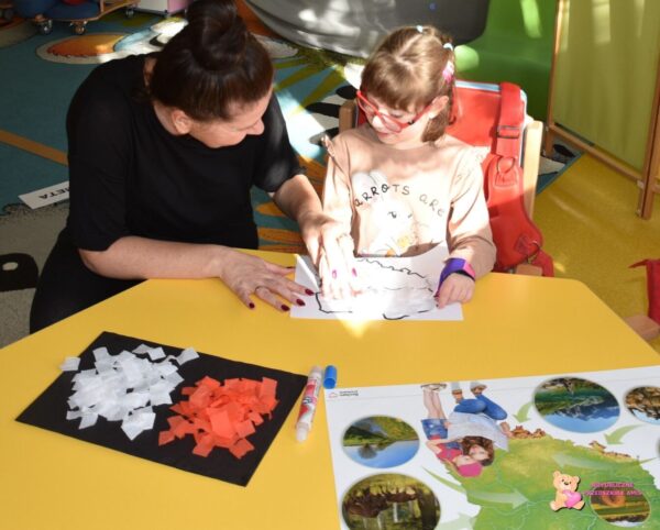 Aby uczcić Święto Niepodległości podczas zajęć dzieci poznały symbole narodowe, a następnie wykleiły mapę polski biało- czerwoną bibułą.