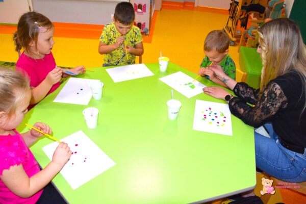 Dzieci doskonaliły motorykę dużą, uczyły się obracać na materacu i z radością uczestniczyły w różnorodnych ćwiczeniach ruchowych. To był tydzień pełen fantazji, nauki i świetnej zabawy!