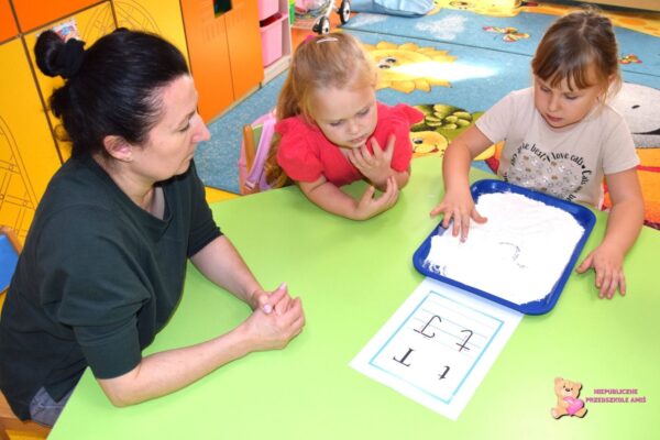 Podczas zajęć rozwijaliśmy wyobraźnię i kreatywność, tworząc piękne prace plastyczne inspirowane bajkami. Poznaliśmy także nową literkę T, t i ćwiczyliśmy jej zapis na materiale sypkim. Nie zabrakło też ruchu!