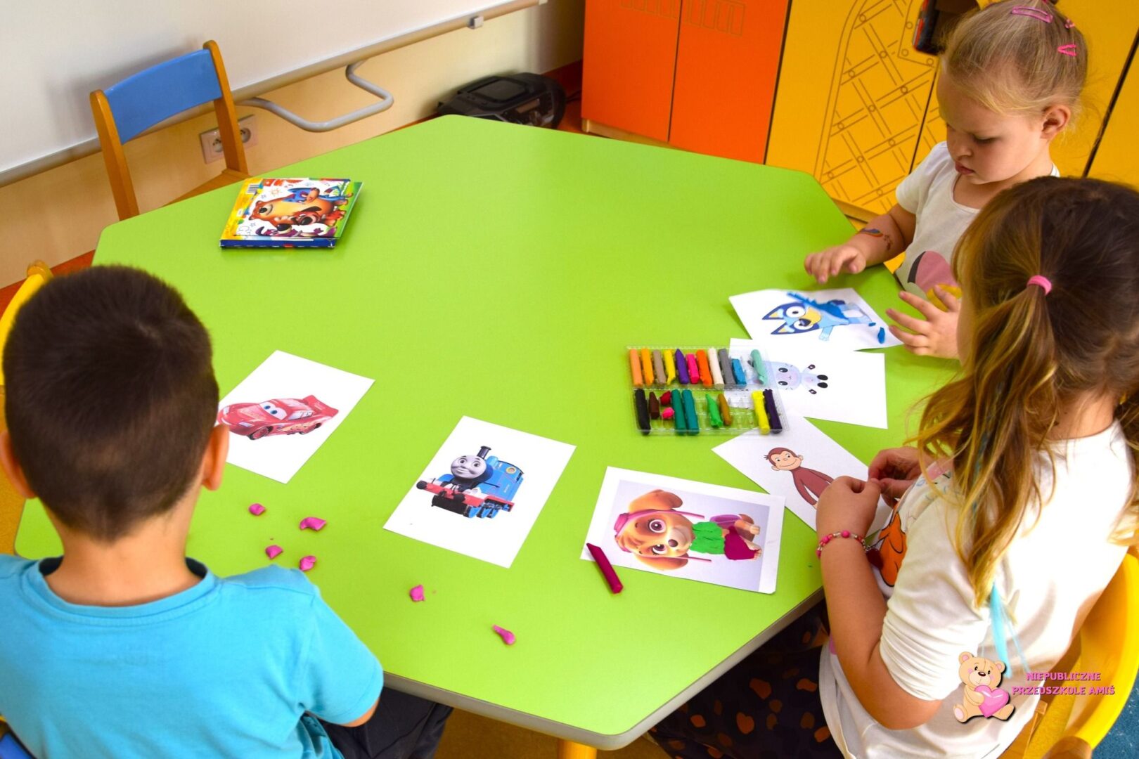 Podczas zajęć rozwijaliśmy wyobraźnię i kreatywność, tworząc piękne prace plastyczne inspirowane bajkami. Poznaliśmy także nową literkę T, t i ćwiczyliśmy jej zapis na materiale sypkim. Nie zabrakło też ruchu!
