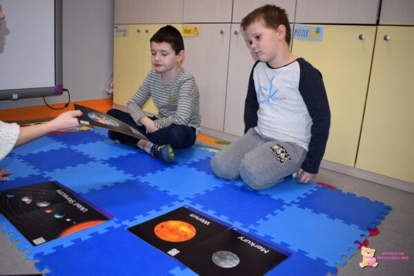Chłopcy z grupy „Zajączki” w ramach tygodniowej tematyki mieli możliwość poznać bliżej Układ Słoneczny