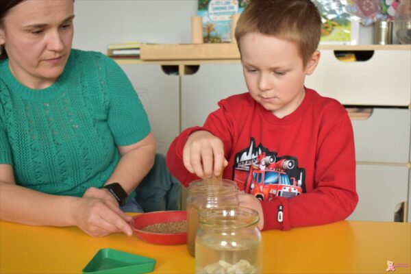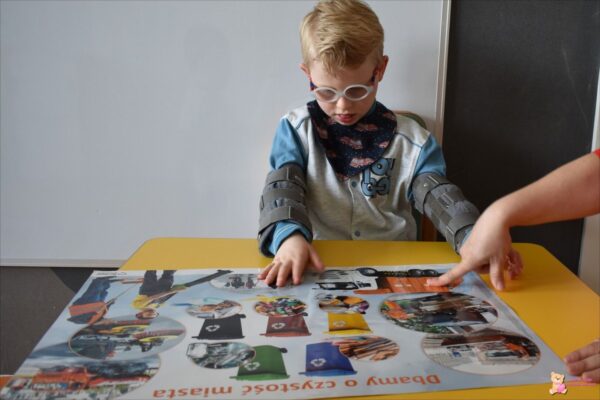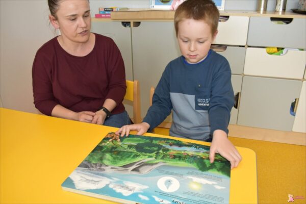 W zeszłym tygodniu grupa Dinusiów omawiała blok tematyczny „Dbamy o naszą planetę”🌎. Podczas zajęć uczyliśmy się jak segregujemy różnego rodzaju odpady za pomocą tablicy multimedialnej i wskazywania odpowiedniego kosza śmieci. Wykonaliśmy wspólnie kodeks małego ekologa🗺. Ciocie przygotowały nam teatrzyk pt. „ Z Ziemią za pan brat – dowiedzcie się jak dbać o świat”. W trakcie zajęć wykonaliśmy eksperymenty pt. „Co przyciąga puszkę” polegający na wielokrotnym pocieraniu balona o włosy i przybliżając balon do puszki położonej bokiem i obserwując jak puszka się turla, „Czysta woda” – polegający na wlaniu do dwóch słoików wody i dodaniu do niego kamieni a do drugiego piasku i obserwacji jaki kolor będzie miała woda.