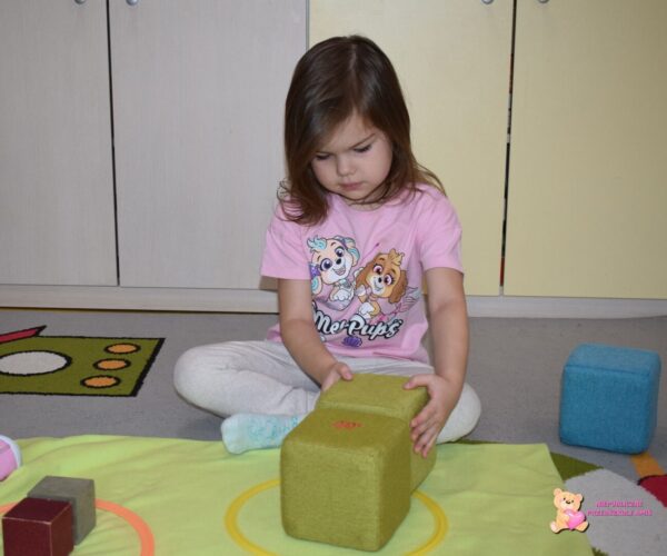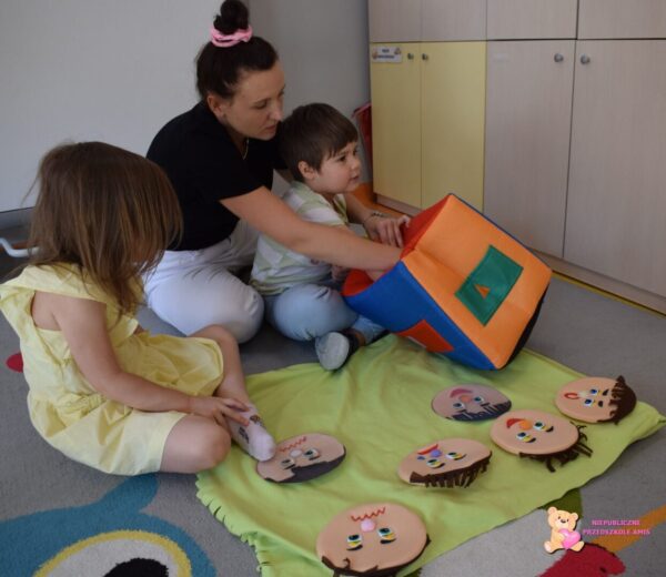 W tym tygodniu przedszkolaki z grupy Promyczków dowiedziały się jakie emocje nam towarzyszą w życiu codziennym. Dzieci brały udział w zajęciach poświęconych uczuciom – od radości, poprzez zaskoczenie, aż po smutek i złość. Amisiaki starały się rozpoznać i dopasować emocje do odpowiedniej buźki wylosowanej z kolorowej kostki. Podczas zajęć przedszkolaki z pomocą, próbowały określić stosunek wielkościowy przy użyciu małych i dużych klocków wkładając je do odpowiedniej obręczy. Nie zabrakło także zabaw z wykorzystaniem magicznego dywanu w Sali Doświadczania Świata.