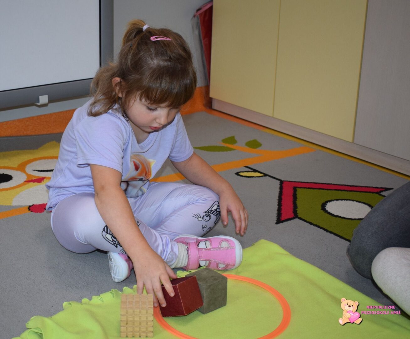 W tym tygodniu przedszkolaki z grupy Promyczków dowiedziały się jakie emocje nam towarzyszą w życiu codziennym. Dzieci brały udział w zajęciach poświęconych uczuciom – od radości, poprzez zaskoczenie, aż po smutek i złość. Amisiaki starały się rozpoznać i dopasować emocje do odpowiedniej buźki wylosowanej z kolorowej kostki. Podczas zajęć przedszkolaki z pomocą, próbowały określić stosunek wielkościowy przy użyciu małych i dużych klocków wkładając je do odpowiedniej obręczy. Nie zabrakło także zabaw z wykorzystaniem magicznego dywanu w Sali Doświadczania Świata.
