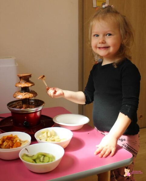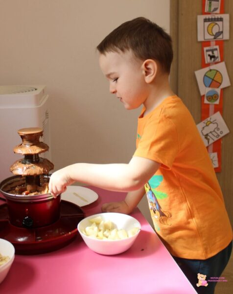 – obchodziliśmy Dzień Czekolady🍫🍫 Na porannym kręgu ciocia Klaudia opowiedziała nam o czekoladzie oraz o procesie jej wytwarzania👩‍🏫 W drugiej części zajęć przeszliśmy do degustacji czekolady🍫 z owocami takimi jak kiwi🥝 brzoskwinia🍑 gruszka🍐melon🍈 truskawki🍓oraz banan🍌Było wspaniale i smakowicie.