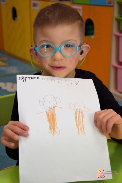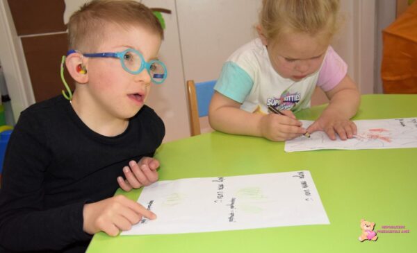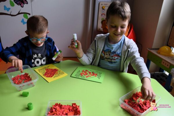Dzieci tworzyły portrety rodziców oraz rysowały, co lubią i nie lubią mama i tata. Ćwiczyły pamięć poprzez określanie, którego koloru serca brakuje. Rozwijały umiejętności matematyczne oraz językowe- ćwiczyły odejmowanie w zakresie 10 oraz utrwalały znajomość alfabetu.