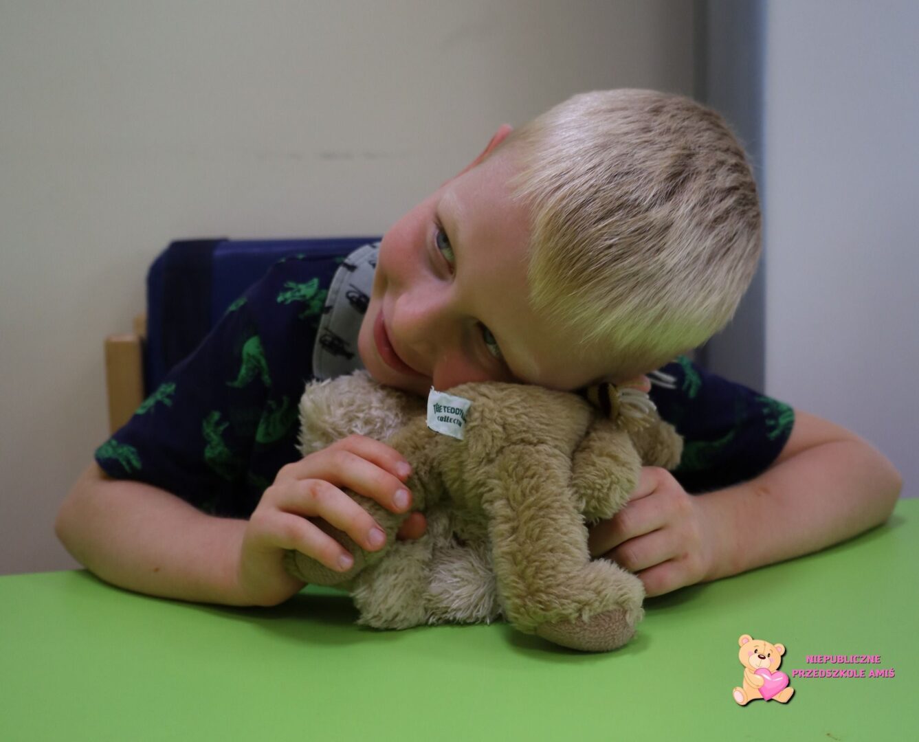 , gdzie mogły w bezpiecznej atmosferze nawiązać bliski kontakt z psem terapeutycznym. Spotkanie to sprzyjało rozładowaniu napięcia i umożliwiło dzieciom wyrażenie swoich emocji. Po sesji z psem, dzieci przystąpiły do twórczej aktywności, rysując misia rączkami ![]()