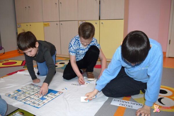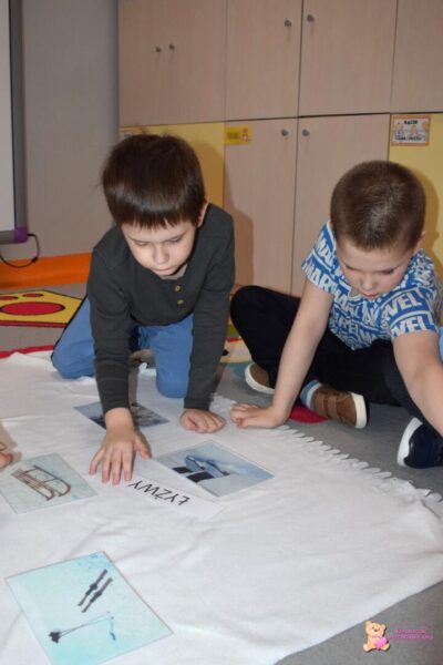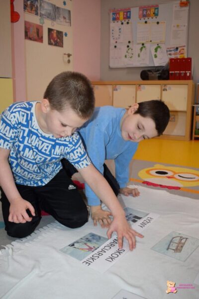 , ćwicząc przy tym precyzję i zdolności manualne. Dzieci przypomniały sobie także literę „U” pisząc ją po śladzie. Na utrwalenie zdobytych wiadomości wszyscy wspólnie pracowali przy tablicy multimedialnej, biorąc udział w interaktywnych grach edukacyjnych, rozwijając swoje umiejętności poznawcze i techniczne.