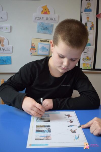 Chłopcy z grupy „Zajączków” w tym tygodniu aktywnie uczestniczyli w zajęciach związanych ze sportami zimowymi. Dzieci miały okazję poznać różnorodne dyscypliny, takie jak narciarstwo