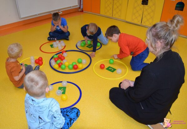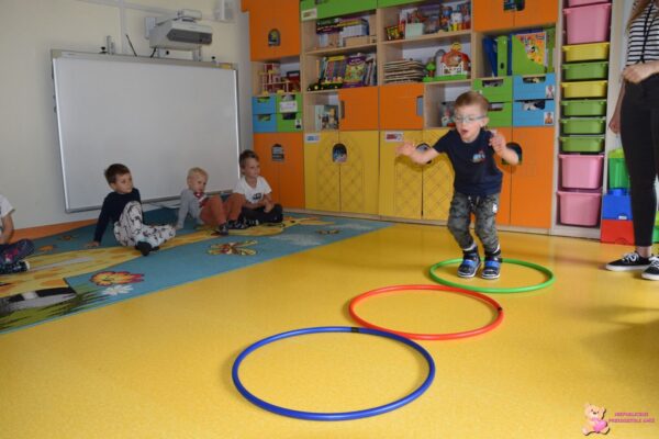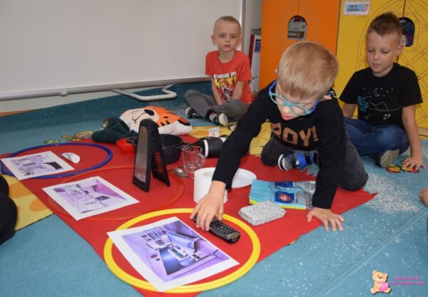W minionym tygodniu grupa Jeżyków omawiała atrybuty poszczególnych pomieszczeń w domu. Chłopcy ćwiczyli także skoki obunóż. Rozwijali także umiejętności matematyczne- dopasowywali odpowiednią ilość piłek do kartonika z cyfrą. W dalszym ciągu doskonalili wycinanie nożyczkami oraz doświadczali wrażeń sensorycznych.