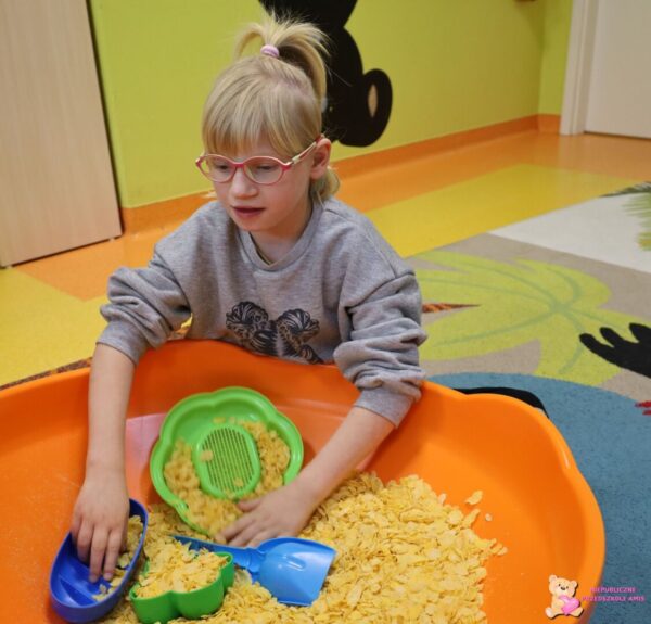 myje nasze ciało. Nie zabrakło również zabaw w piaskownicy wypełnionej płatkami kukurydzianymi